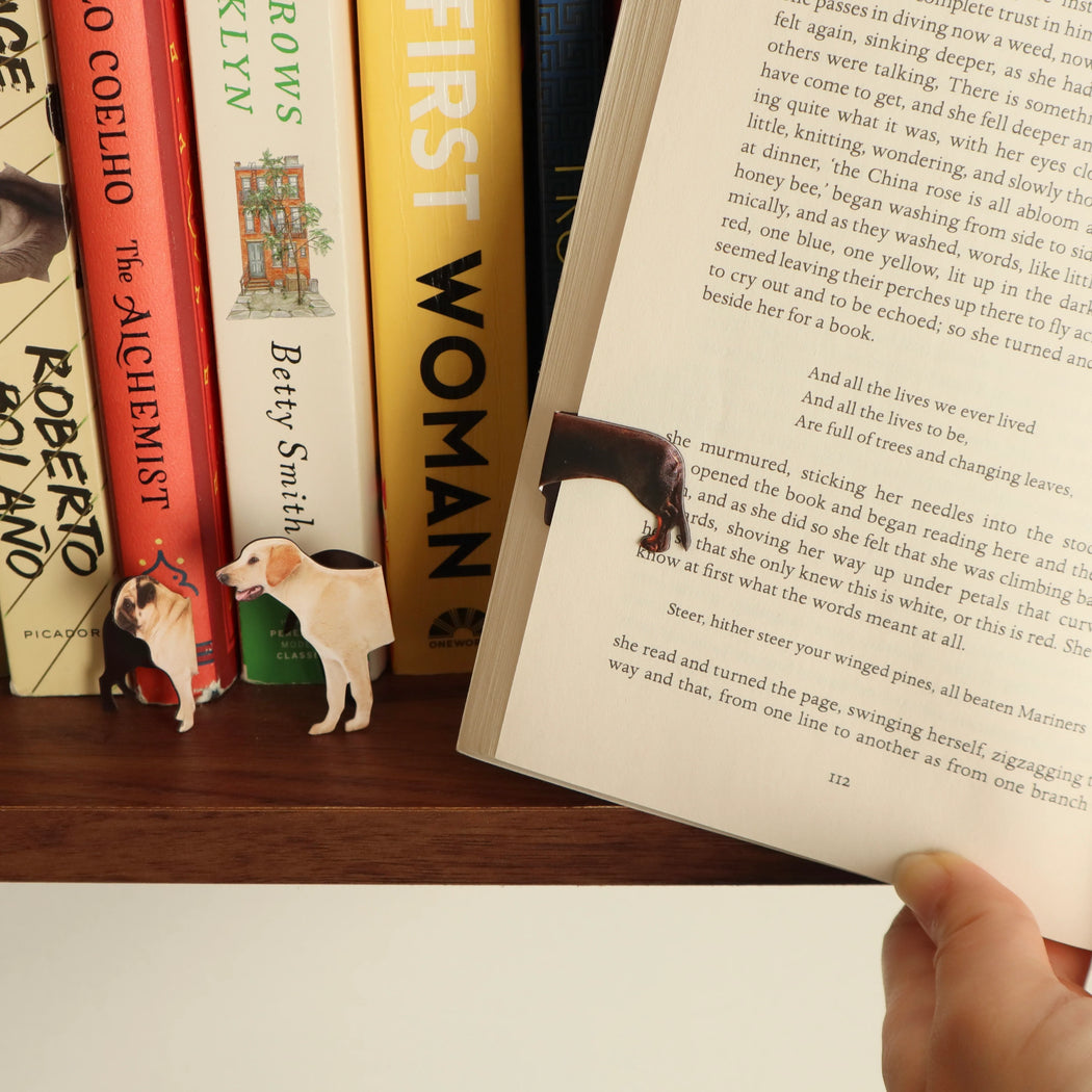 Get your page to "stay" with our well-trained magnetic doggies. Set of 4 magnetic bookmarks, includes a Dachshund, German shepherd, Pug and a Labrador retriever.