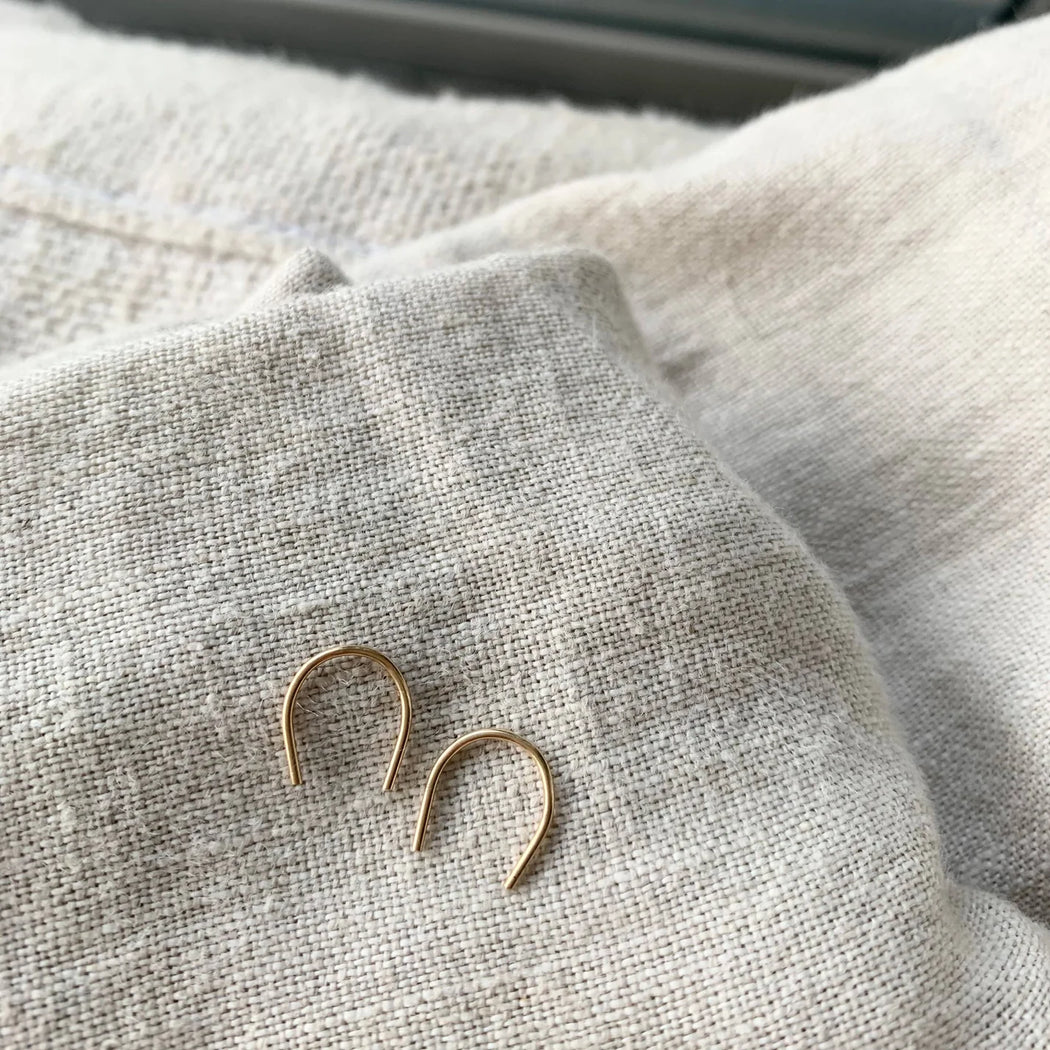 The Lullwater Earrings by Alice Rise from the Essentials Collection are 14k gold filled, embodying timeless elegance. These nickel-free, hand-hammered earrings are sustainably crafted to celebrate our shared humanity through their unique, artisanal beauty.