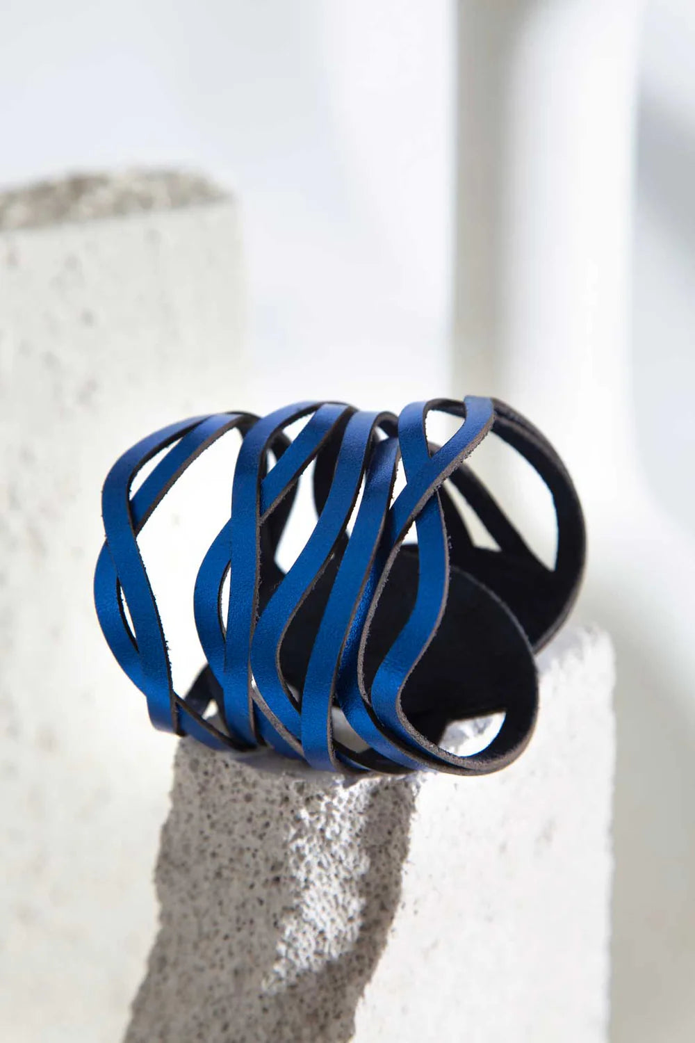 Experience the beauty and quality of 100% Argentine leather with the Curves Duo cuff bracelet - a must-have addition to your jewelry collection!