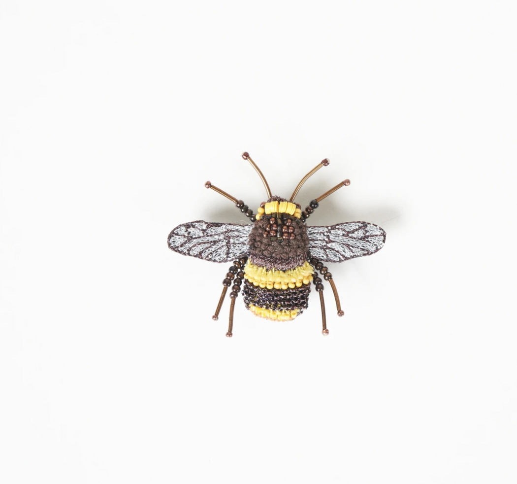 Inspired by the beauty and complexity of nature, sisters Dhruti and Seema started Trovelore, an atelier that creates art and jewelry meticulously embroidered brooches and objects.  Using skilled artisans, and following fair-trade practices, they build up organic textures that give their brooch-pins a ‘lifelike’ quality.