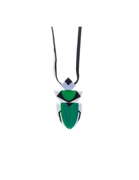 2 in 1 brooch and pendant Beetle figurine - Composed by seven pass through modules - Brooch clip and leather cord.