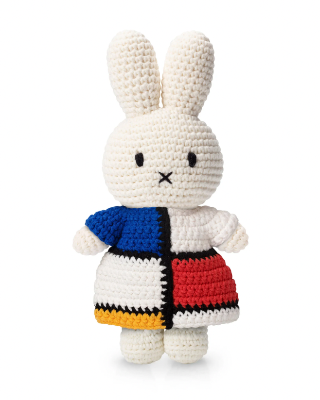 Created in collaboration between Just Dutch and Mondrian House, this crocheted Miffy celebrates both the storybook character from Dick Bruna’s beloved books and the renowned Dutch abstract artist.