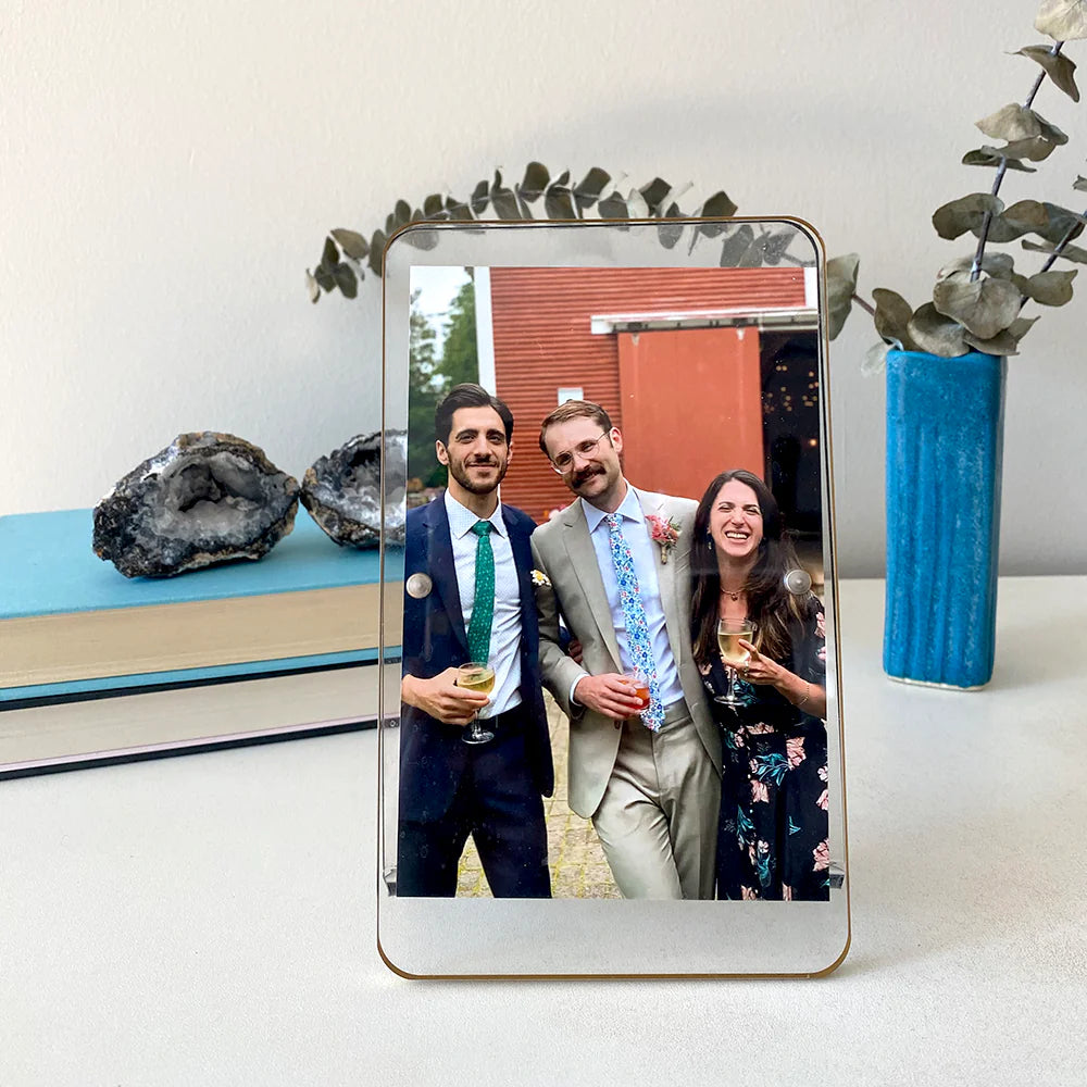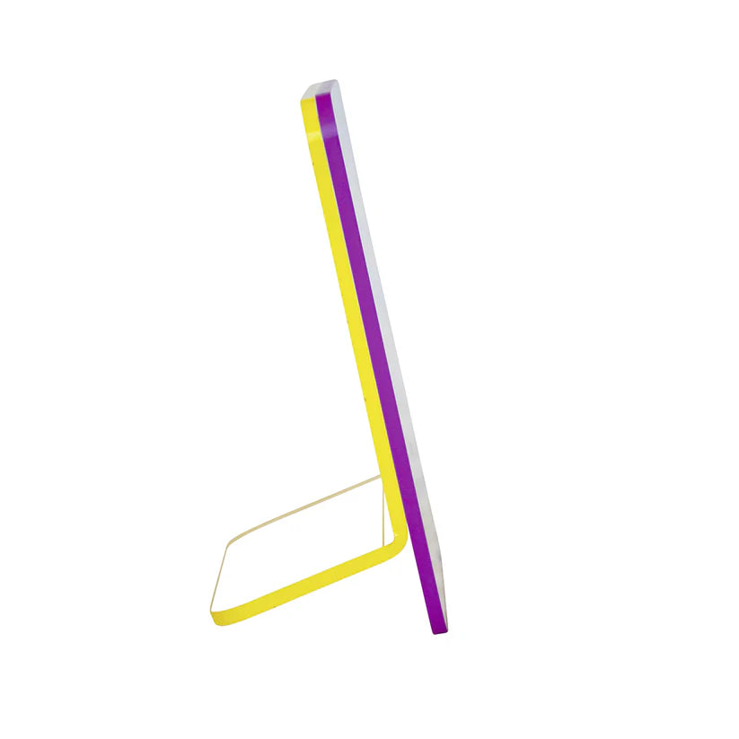The 4x6 inch Colorful Magnet Frame is comprised of two thin crystal clear acrylic panels, each one edged in a different bright color.