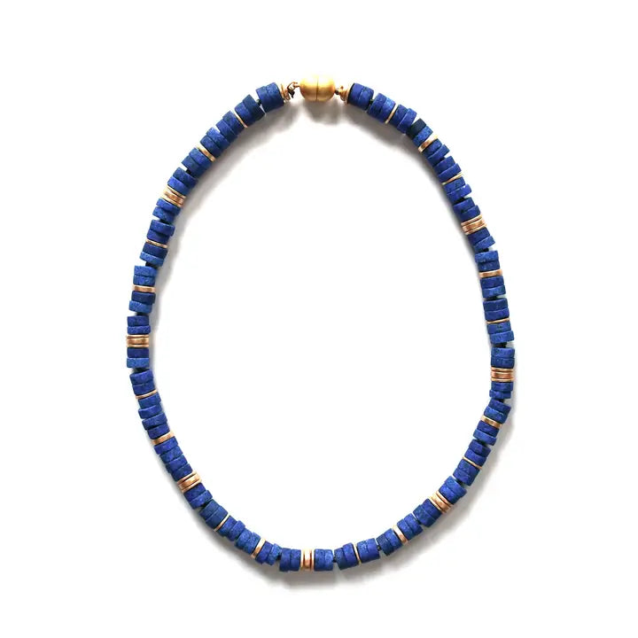 Lapis with gold discs necklace with magnetic clasp Piano wire jewelry is the perfect addition to your collection of sophisticated, modern accessories. This line presents a unique opportunity to highlight your personal style.