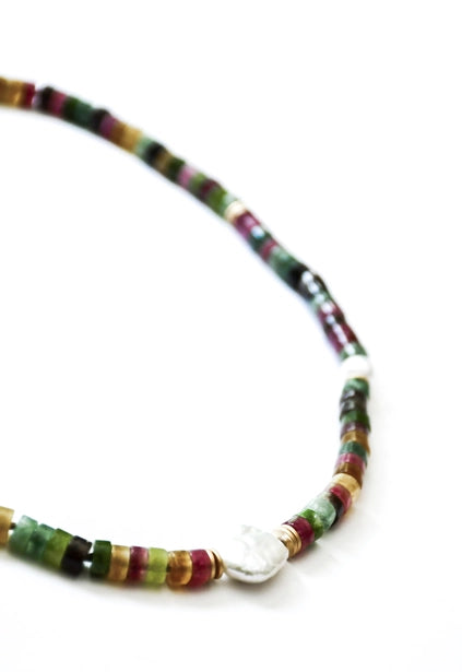 Elevate your elegance with the Sea Lily Quartz Necklace, featuring a mix of quartz and coin pearl accents. The magnetic clasp ensures easy wear and secure fastening.
