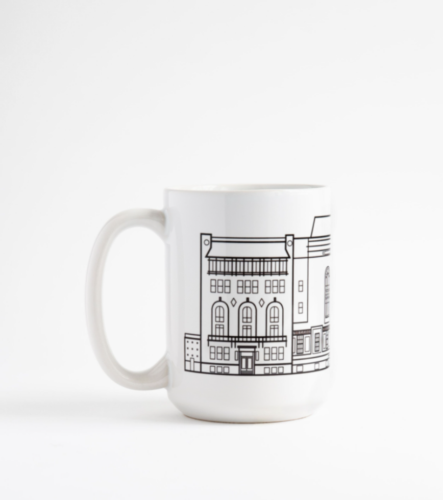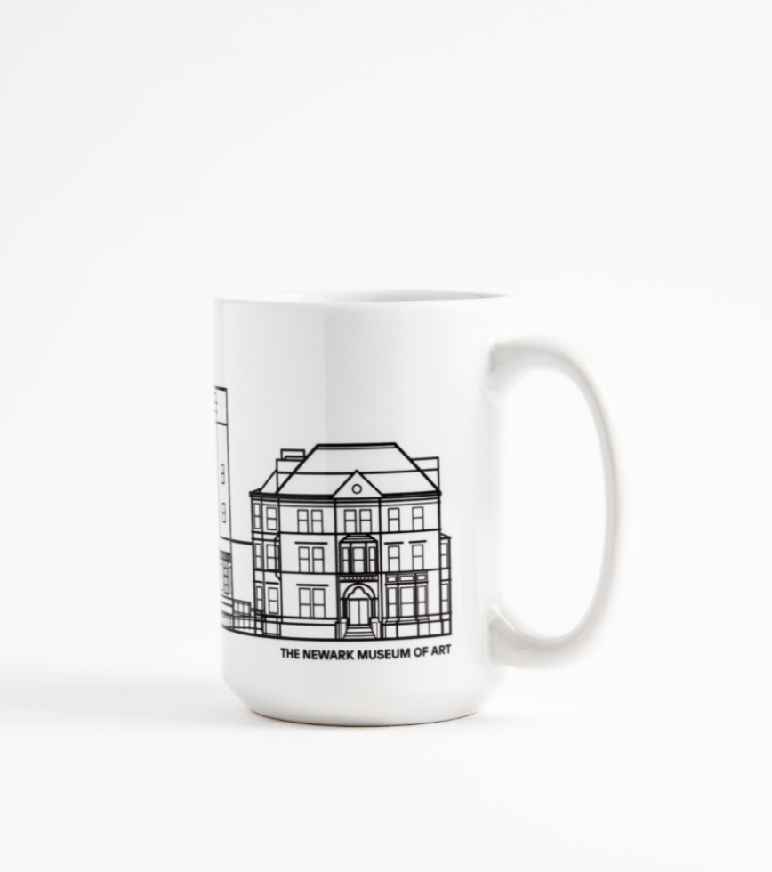 The façade of The Newark Museum of Art is rendered on this 15oz ceramic mug. The main Beaux Arts building was designed by Jarvis Hunt in the 1920s, and was later renovated and expanded by Michael Graves in the 1980s.  The 1885 Ballantine house (on right) became part of the museum in 1937.