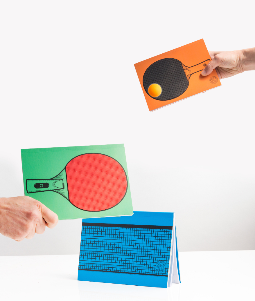 Knocking ideas back and forth is a great way to brainstorm. We call this "ideas ping-pong". For when you need a break from all that exhausting creativity, play some actual ping-pong with your note books.