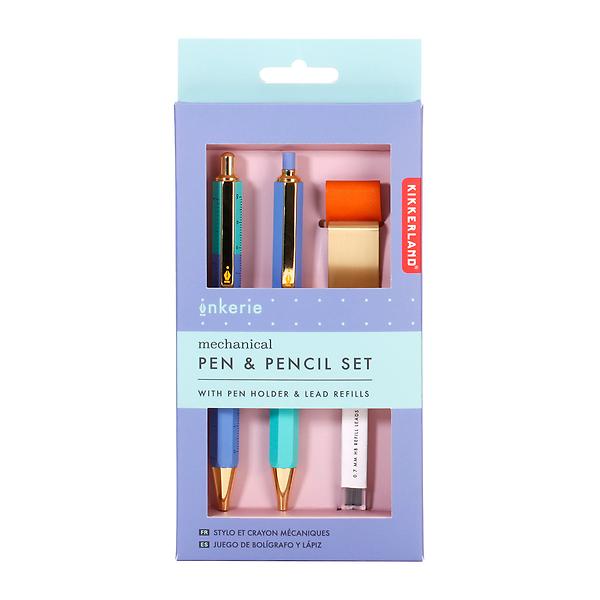 - Includes eraser-top mechanical pencil with 0.7mm lead refills, retractable black ink pen and clip-on pen holder