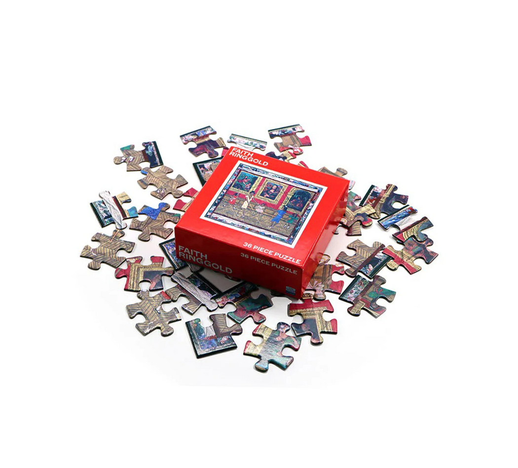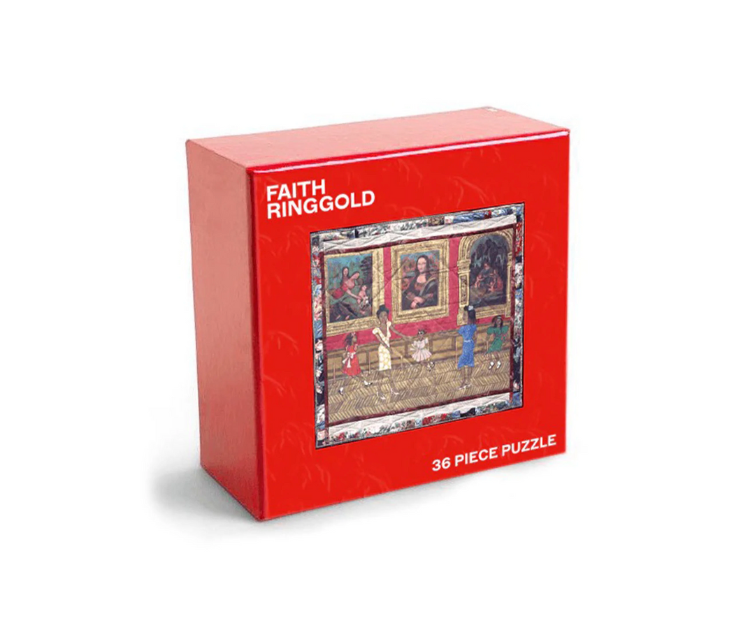 This fun 36 piece jigsaw puzzle depicts Ringgold's Dancing at the Louvre (The French Collection Part 1: #1), (1991), Willia is accompanied by her friend Marcia and her two young daughters. They dance joyously in front of Old Masterworks that epitomise Western femininity and motherhood.
