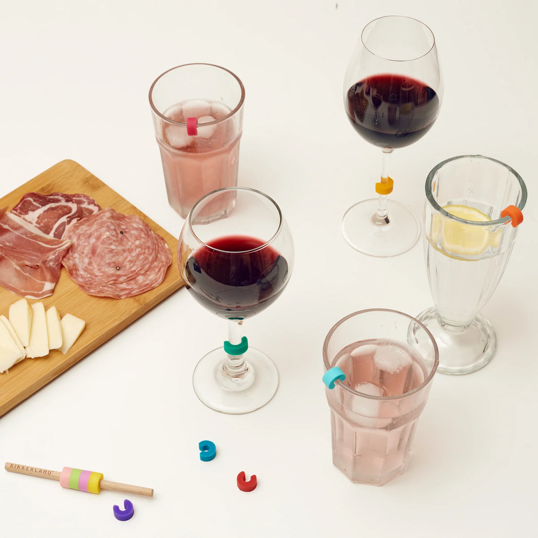 Color code your party! These drink markers keep track of your drinks and add some color. Set of 12 silicone drink markers with wooden dowel for organized storage.