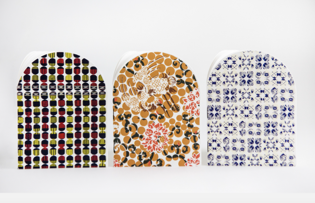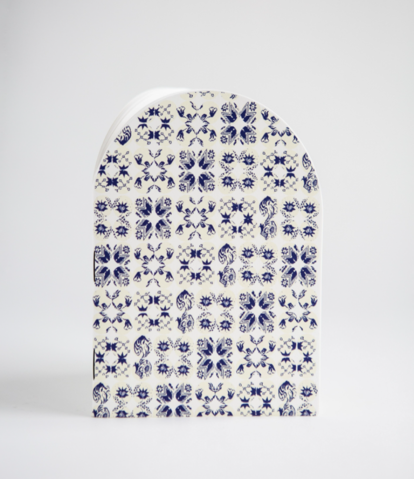 A set of 3 notebooks reflecting Repertoire, the installation in the museum's Engelhard Court niches by ceramic Artist Molly Hatch. Hatch is known for her murals made from underglaze-painted porcelain plates. The commission honored the museum's 107-year-tradition of collecting ceramic art and is also inspired by its global textiles collection.