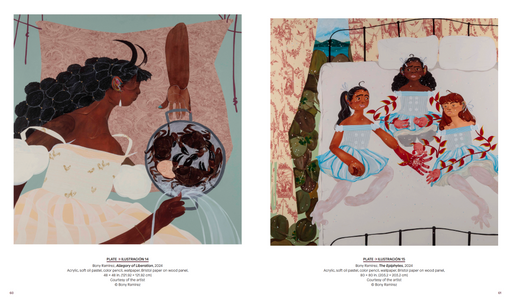 Born in Tenares, Salcedo, Dominican Republic, Bony Ramirez now lives and works in Perth Amboy, New Jersey. His art bridges his Dominican heritage and contemporary life, combining painting and drawing to create life-size mixed media portraits. Ramirez's work features bold, mysterious figures on painted wood panels, reflecting Caribbean history and European colonial influence. Incorporating materials like wallpaper, swords, and rhinestones, his pieces offer a rich, allegorical depth, drawing inspiration from Mannerist and Renaissance portraiture.