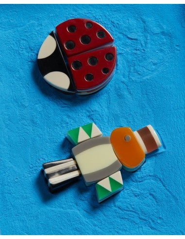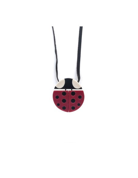 2 in 1 brooch and pendant Lady bug figurine- Composed by seven pass through modules - Brooch clip and leather cord.