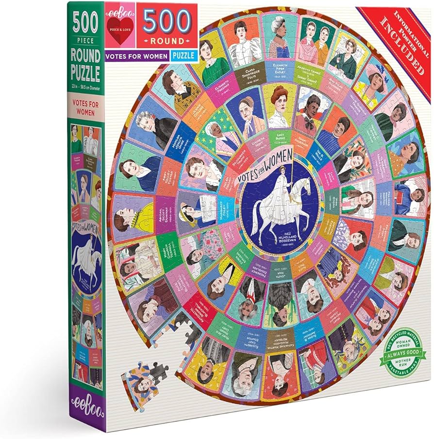This 500 Piece Puzzle celebrates great people who contributed to the Suffrage Movement. These brave individuals fought to give women and people of color the right to vote. All men and women are created equal and deserve to be heard. Remember to vote and exercise the right these women and men fought so hard for.