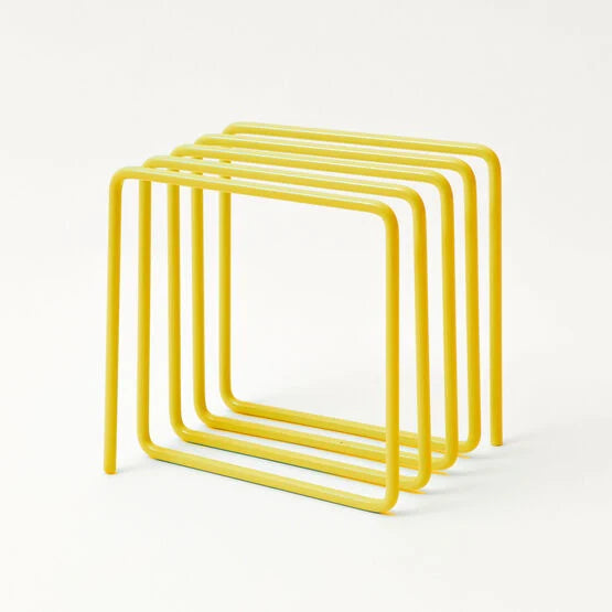 block magazine rack is made from a single length of steel looped in to a cube, as with all classic designs it's amazingly simple.