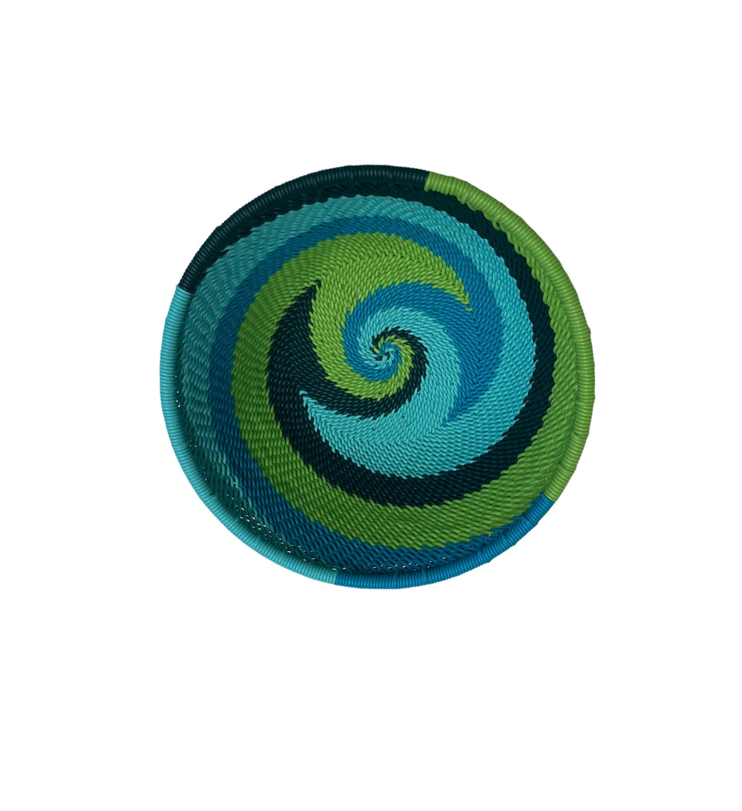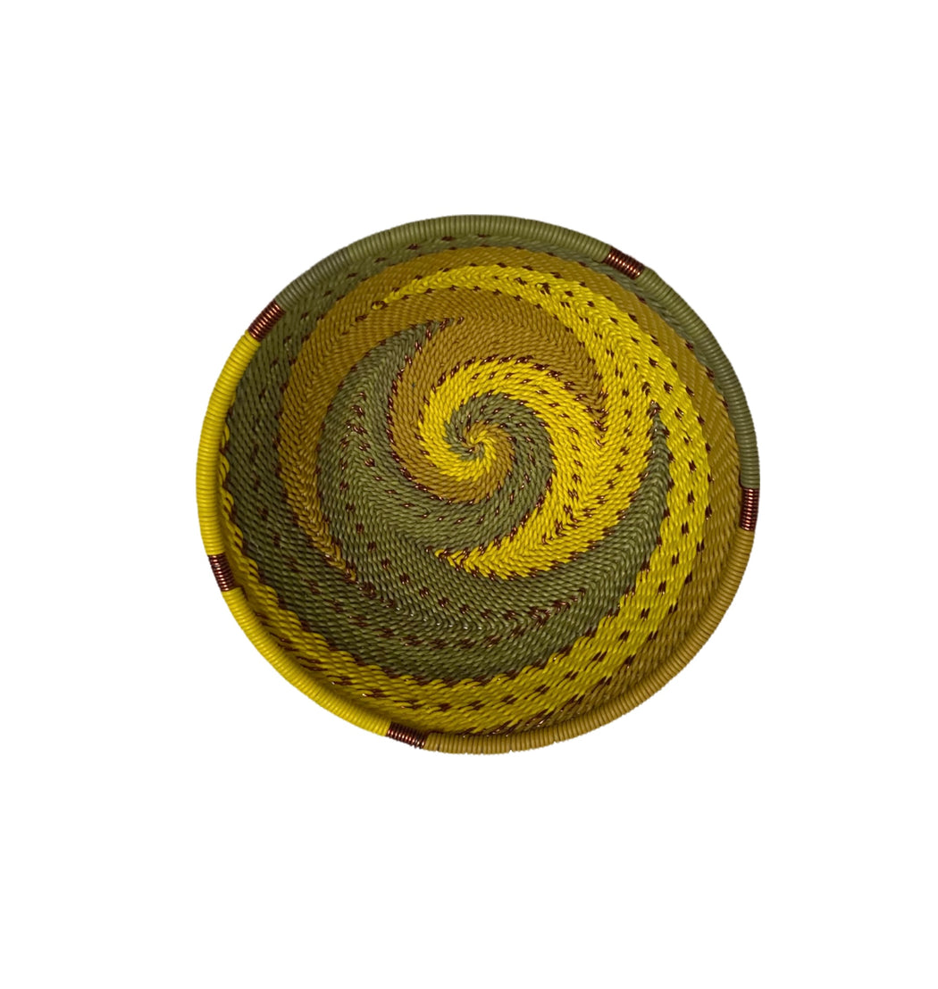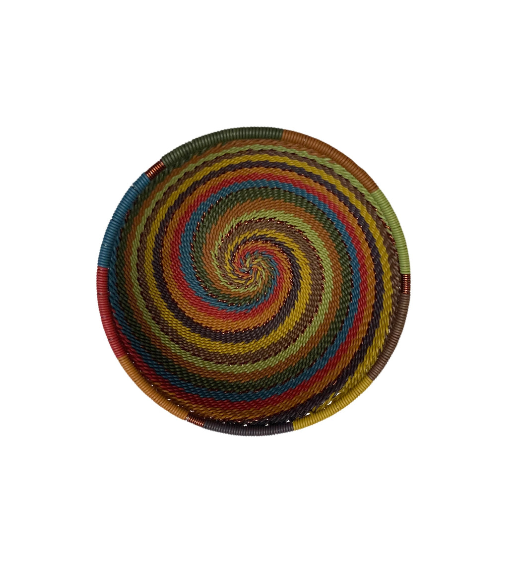 Beginning in the late 1960's, Zulu night watchmen started weaving scraps of multi-colored plastic-coated copper wire - often referred to as telephone wire - rather than the traditional grass and palm. The creative use of this wire has resulted in a vibrant, distinctive new folk art form.