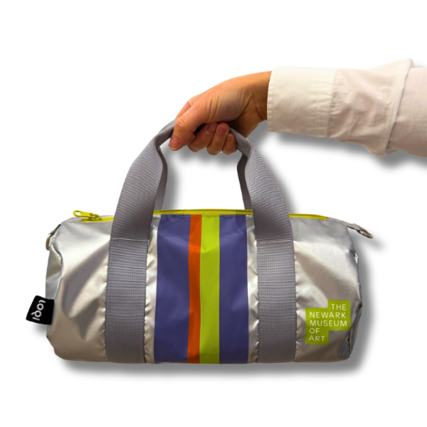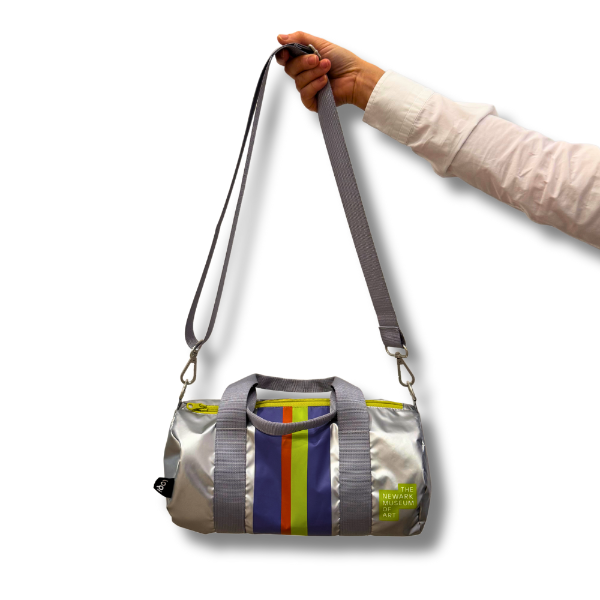 Modeled on the classic OG cylindrical duffel bag, you can carry this retro vibe wherever you go. Our metallic mini duffle bag includes an adjustable removable strap, perfect for wearing cross-body. A limited-edition collaboration with sustainable bag maker, Loqi.