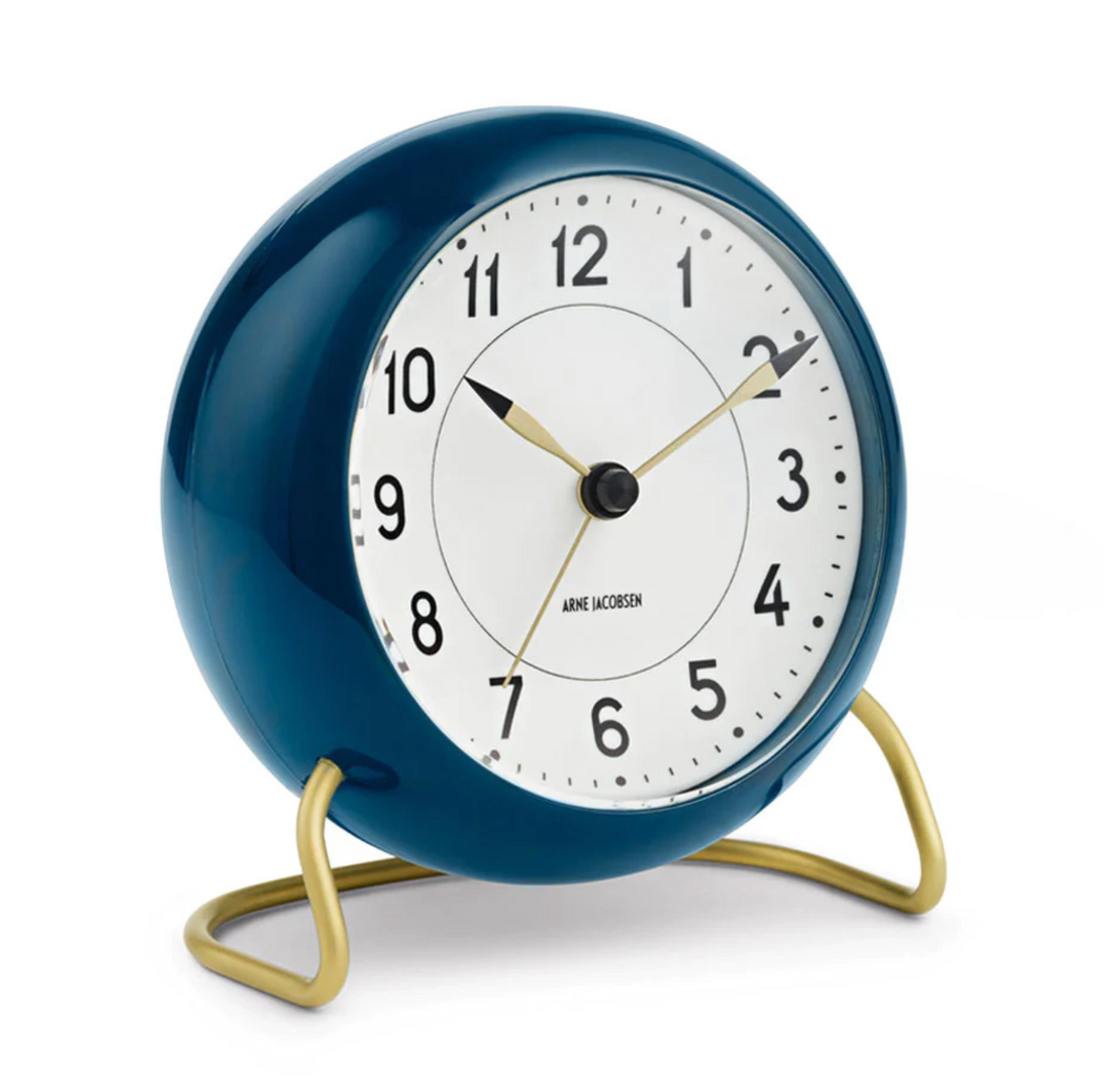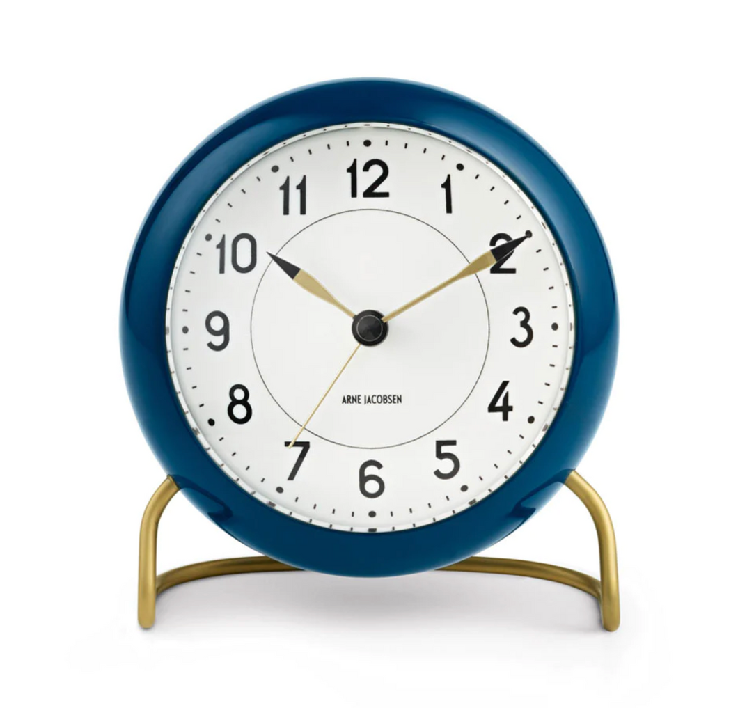 Arne Jacobsen's table clock with alarm feature was created in 1939. Its graphic look and metal base – clearly referencing his own Ant and No. 7 chairs – make the clock an ideal gift for the design enthusiast.