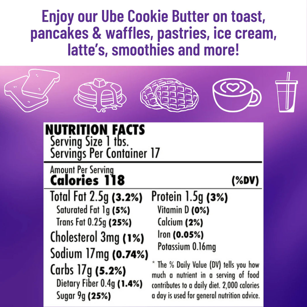 Ninong’s Original Ube Cookie Butter was created to add an ube twist to any of your dishes. Use it as you would any traditional nut butter or hazelnut topping - on toast, in a smoothie, a topping on ice cream, and on top of our Ube Buttermilk Pancake Mix!