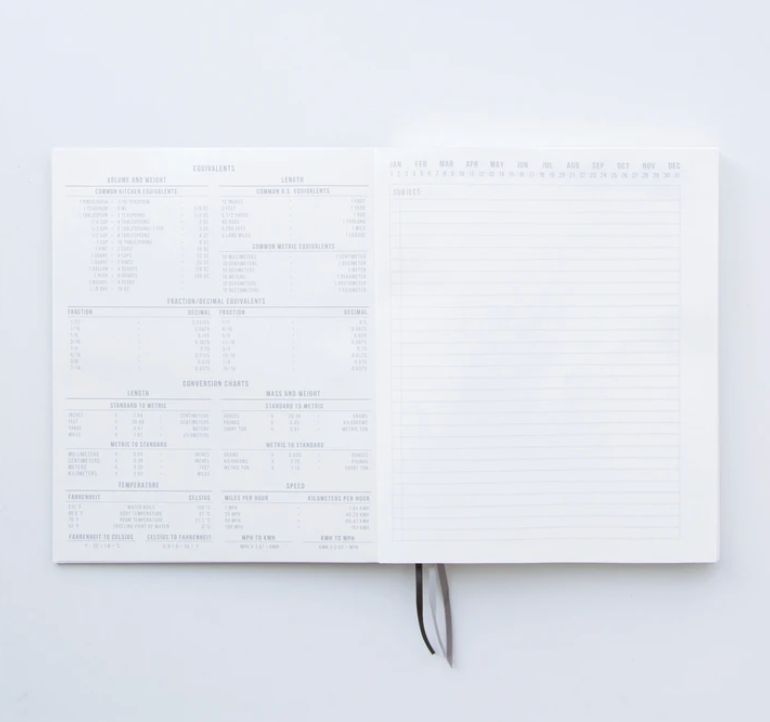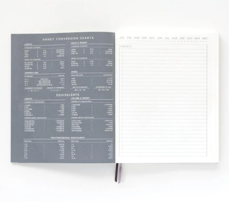 Form meets function. A notebook that works like undated planner in a clean utilitarian design with high-quality construction.
